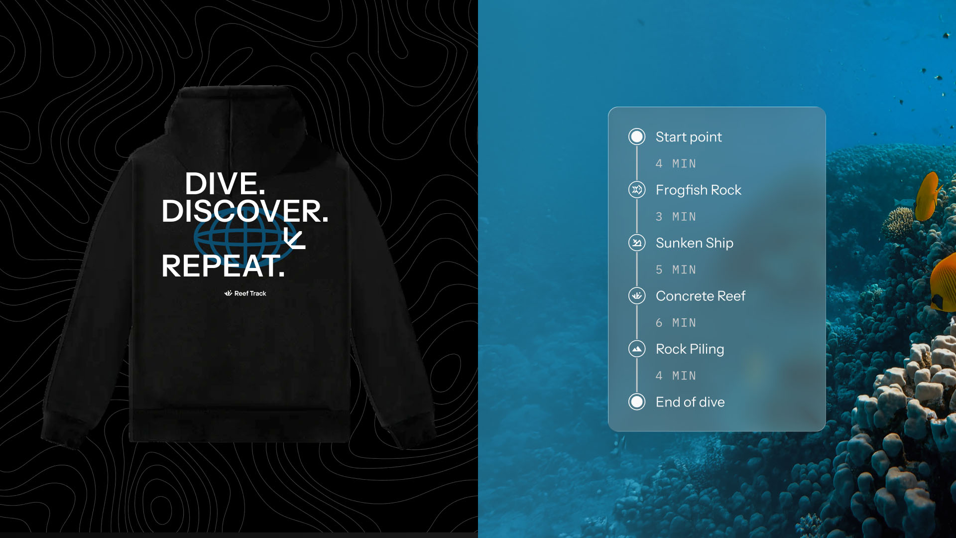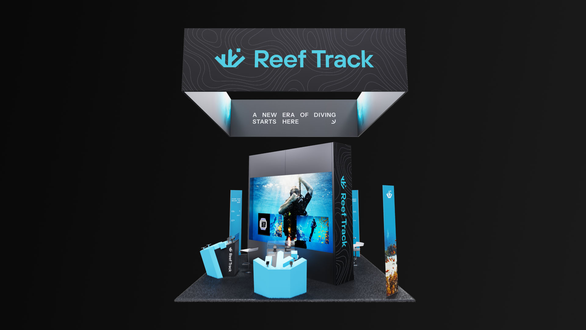 We extended the brand into physical touchpoints through merchandise and booth design for Reef Track’s launch at DEMA. Bold graphics, clear messaging, and a confident visual system made the platform immediately understandable on a busy show floor, and merch gave divers a tangible way to connect with the brand beyond the booth.